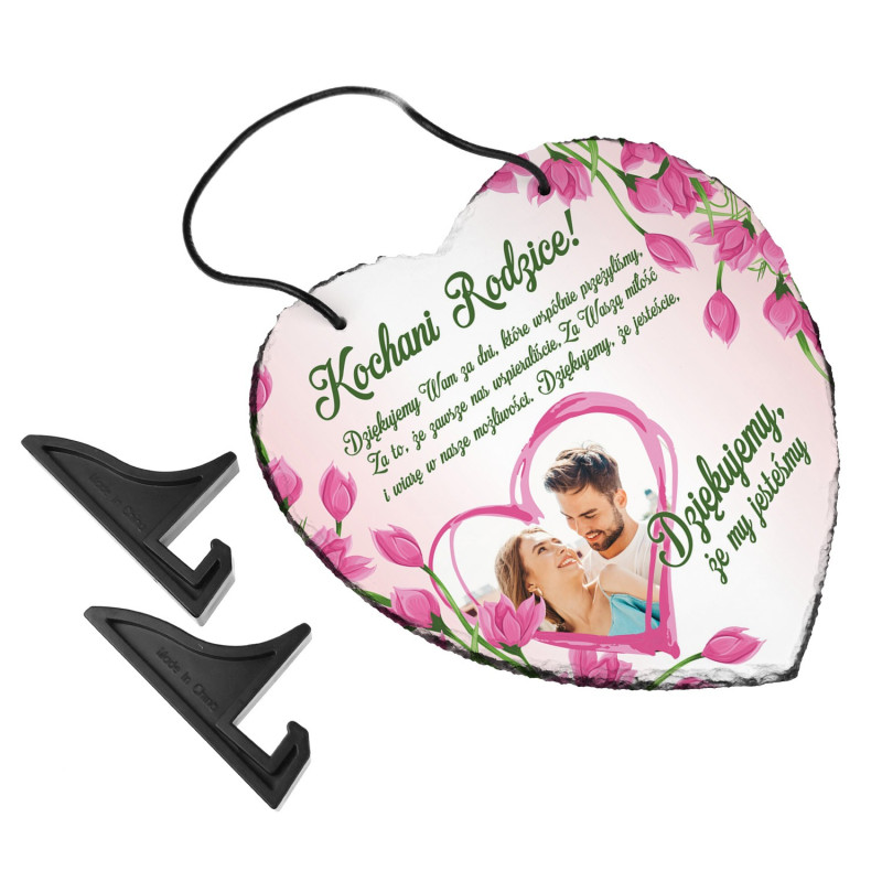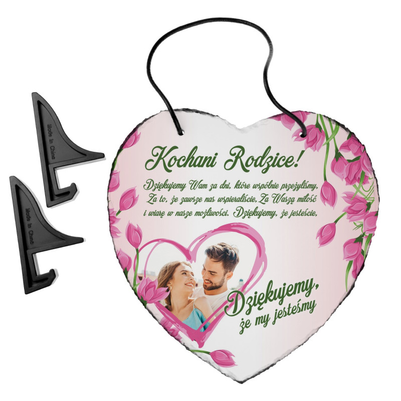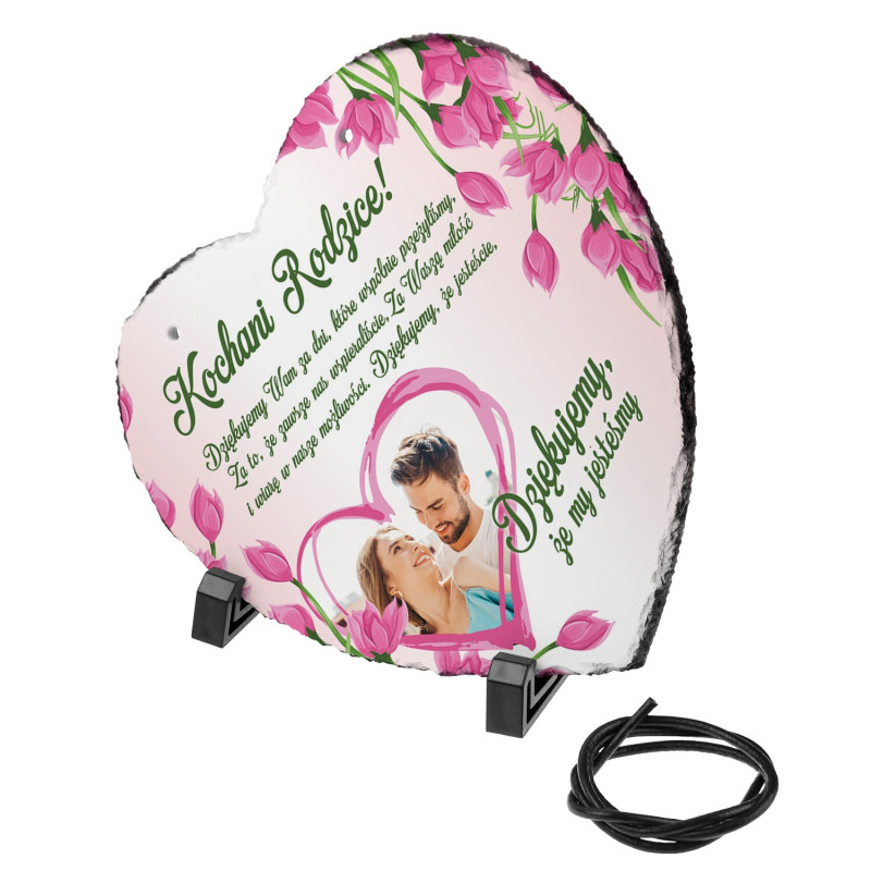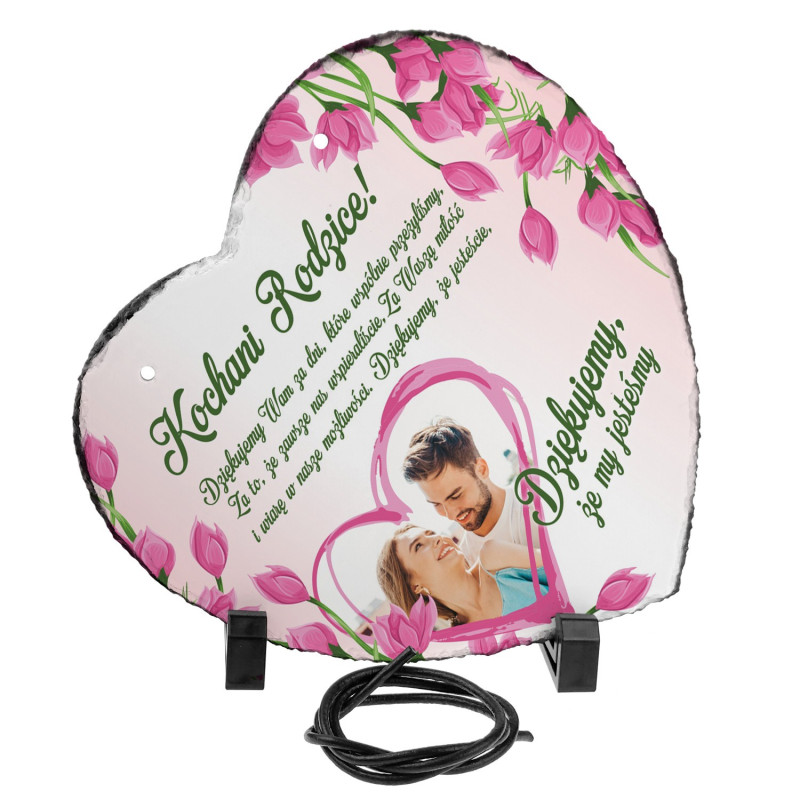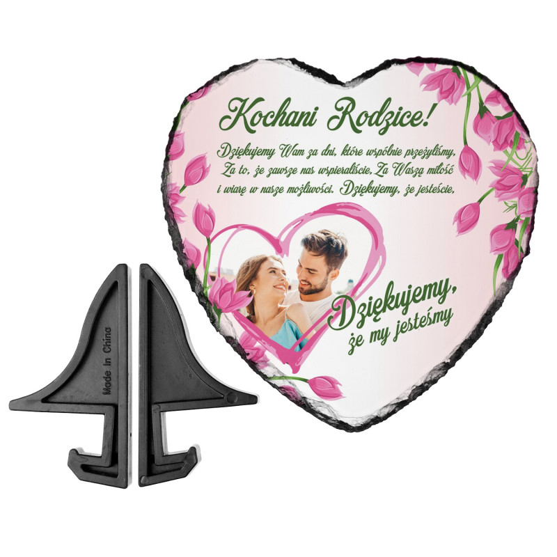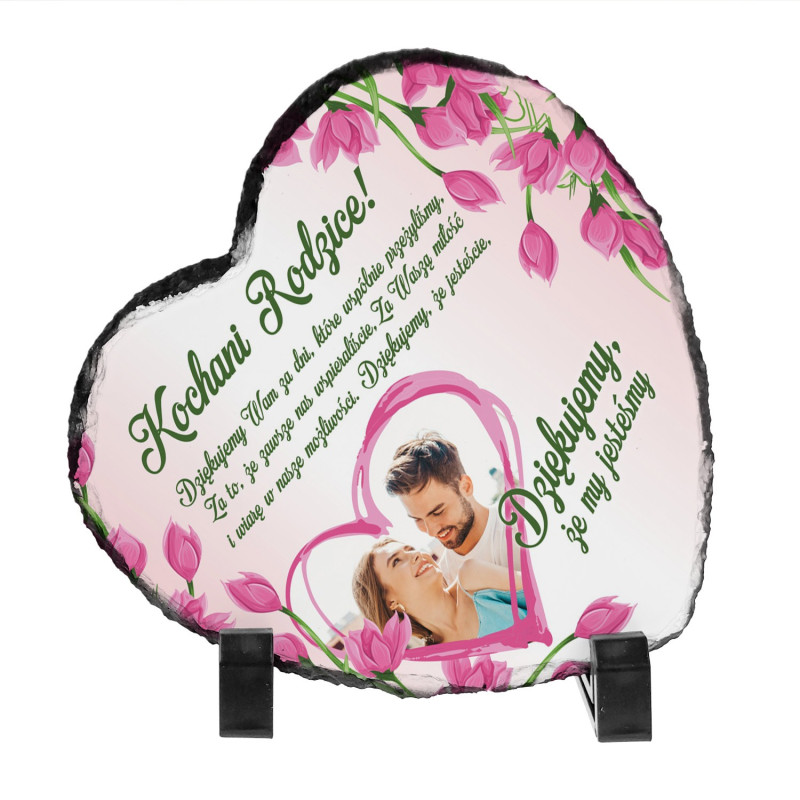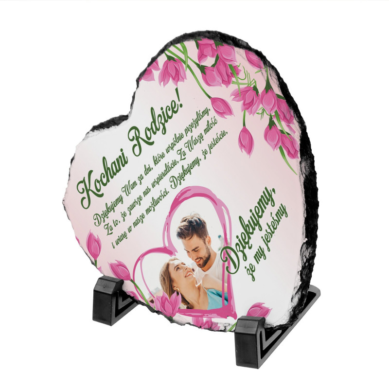 Foto granit (płyta granitowa) w kształcie serca z Twoim zdjęciem- prezent dla rodziców.