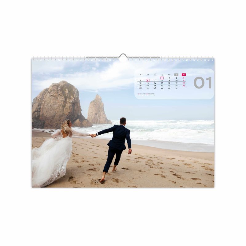 Nie zapomnij zapisać swojej personalizacji, aby móc dodać ją do koszykaKalendarz ze zdjęciami Klienta ślubny - idealny pomysł na prezent oraz sposób upamiętnienia tego pięknego dnia.