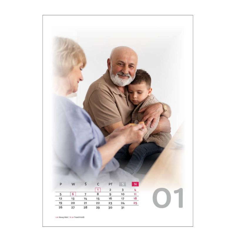 Foto Kalendarz ze zdjęciami specjalnie dla babci i dziadka - poziom różowa okładka.