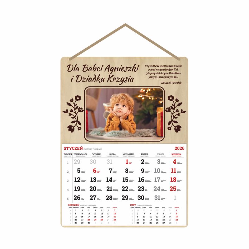 Kalendarz drewniany ze zdjęciem 18 x 13 cm– stworzony specjalnie na Dzień Babci lub Dzień Dziadka. 🎯📦