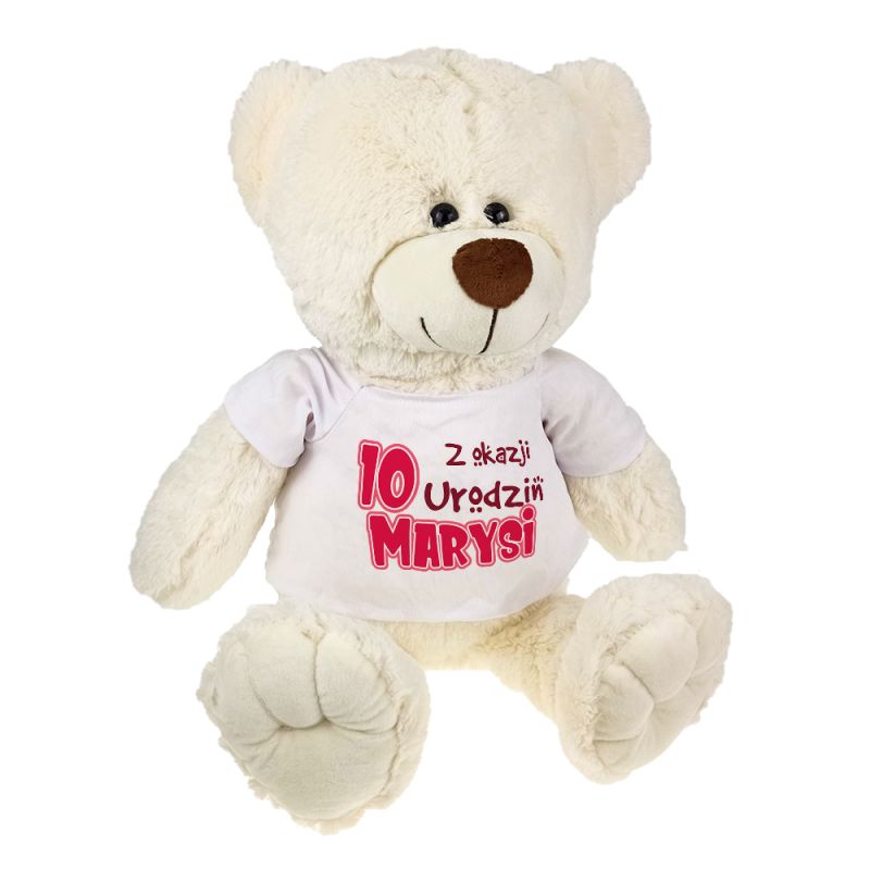 Miś z nadrukiem będzie fajnym prezentem z okazji każdych urodzin- dla mniejszego i większego solenizanta. Chyba wszyscy lubią miśki - mali i duzi, mężczyźni i kobiety. Ten miś ukoi w trudnych sytuacjach, a jego pluszowe futerko umili zasypianie. Na długo pozostanie w pamięci obdarowanej.