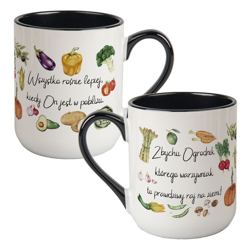 Kubek kawowy duży 330ml z kolorowym uszkiem i wnętrzem- "Ogrodnik, którego warzywniak to prawdziwy raj na ziemi!".