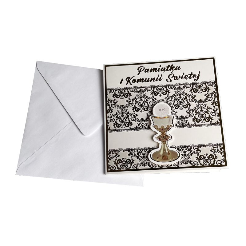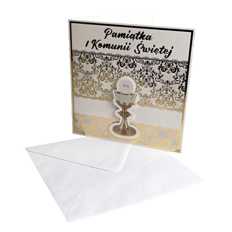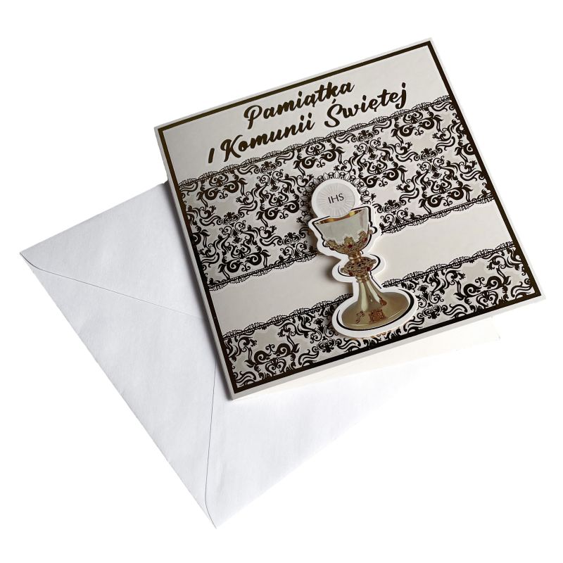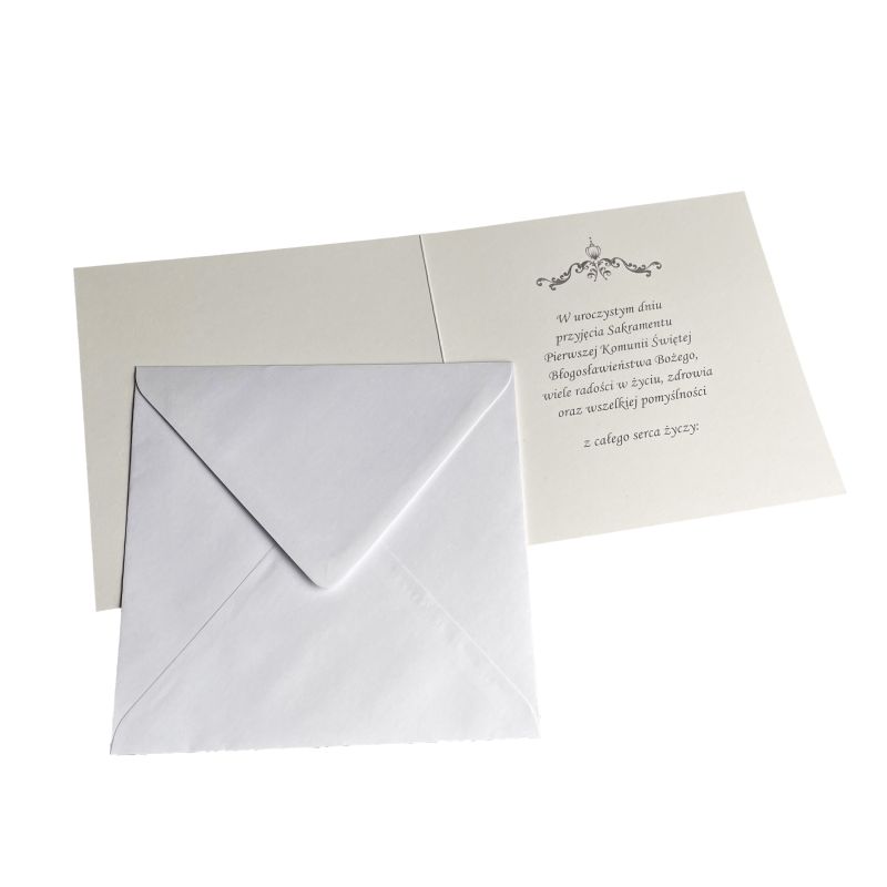 Ręcznie robiona kartka z życzeniami na Komunię- super pamiątka dla dziecka oraz Rodziców- glamour.