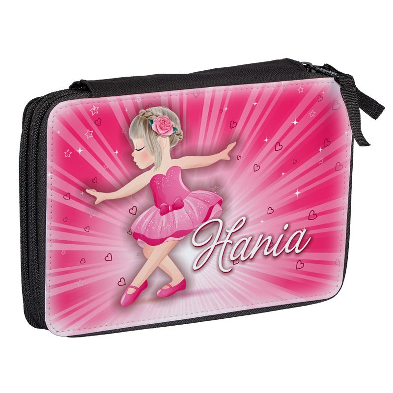 Duży piórnik dwukomorowy dla pierwszoklasisty - Różowa baletnica - zmień imię.
