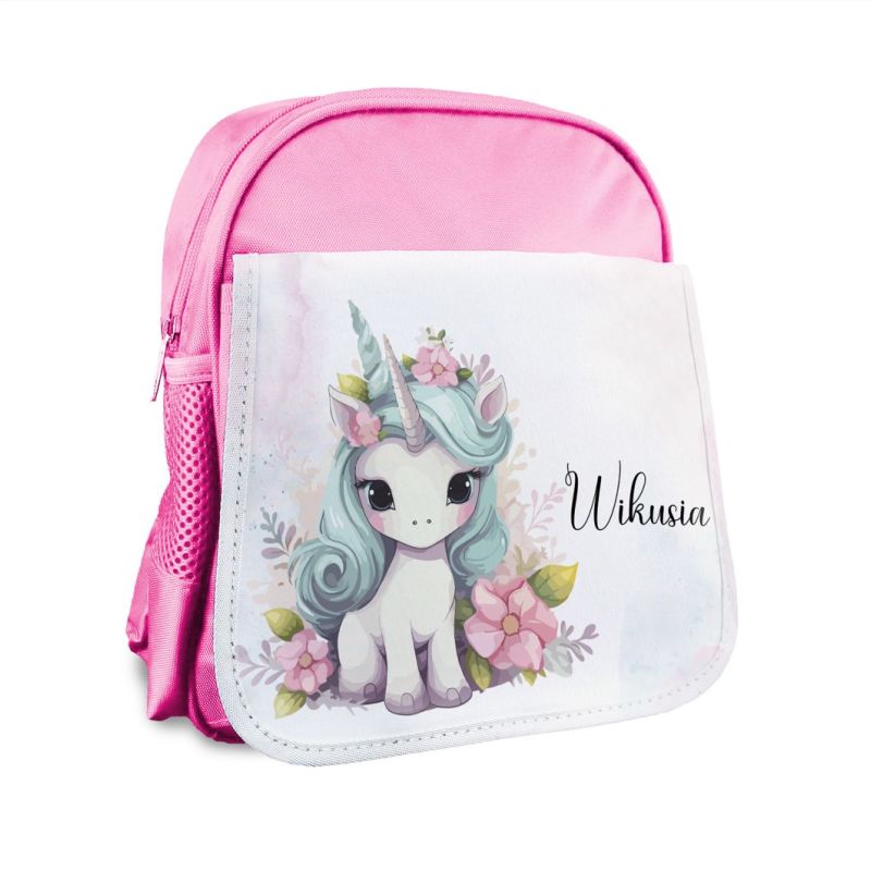 Plecak z grafiką jednorożca oraz imieniem dziecka.