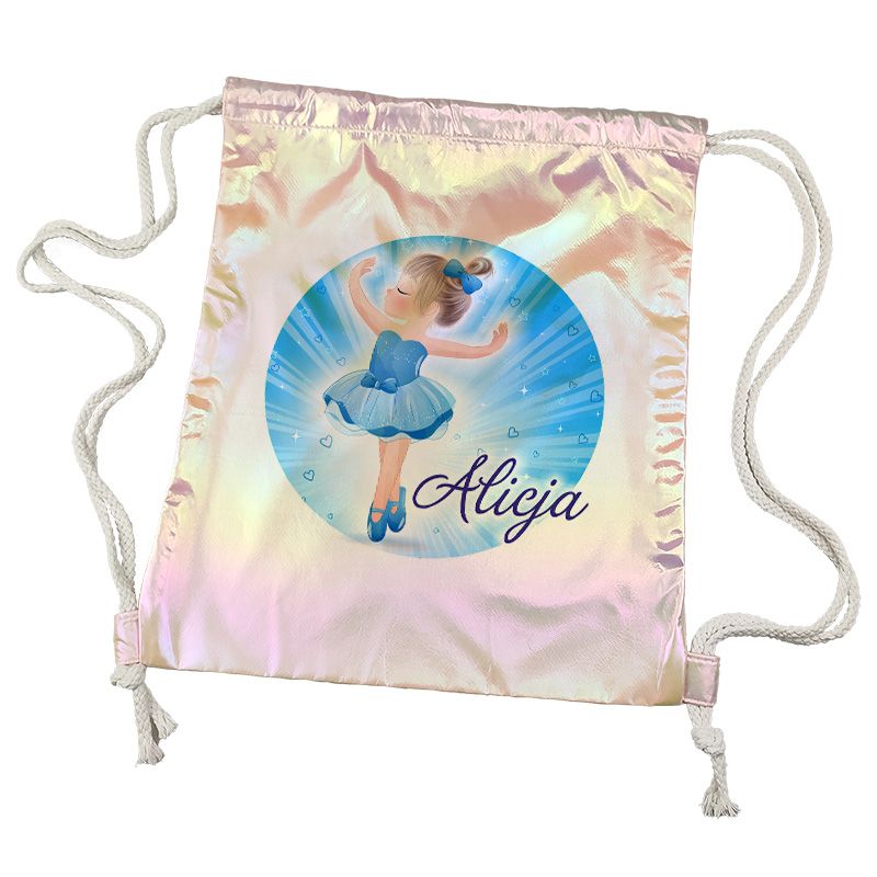 Worko-plecak holograficzny różowy z imieniem- Niebieska baletnica.