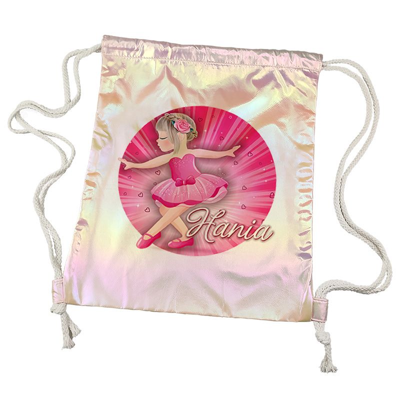 Worko-plecak holograficzny różowy z lamą oraz imieniem.