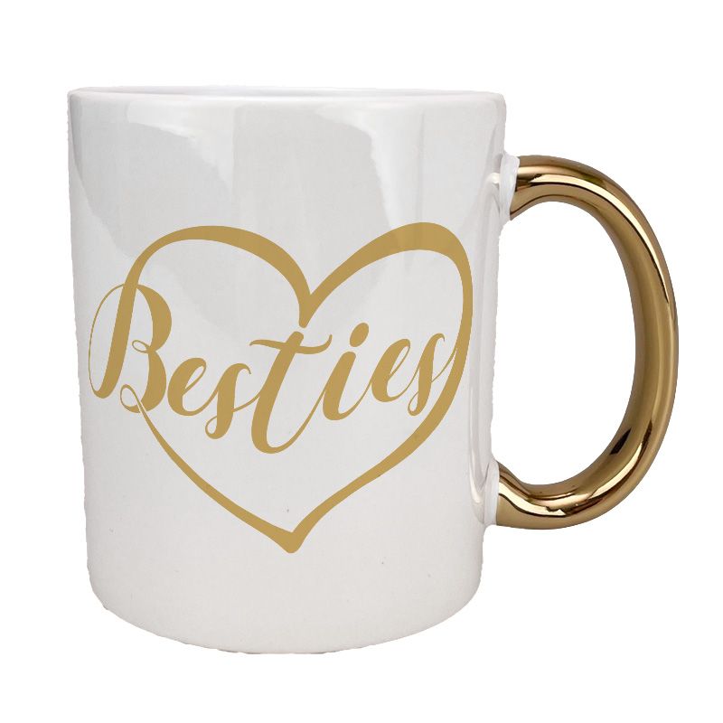 Kubek 330 ml biały ze złotym uszkiem oraz z grafiką "Besties".