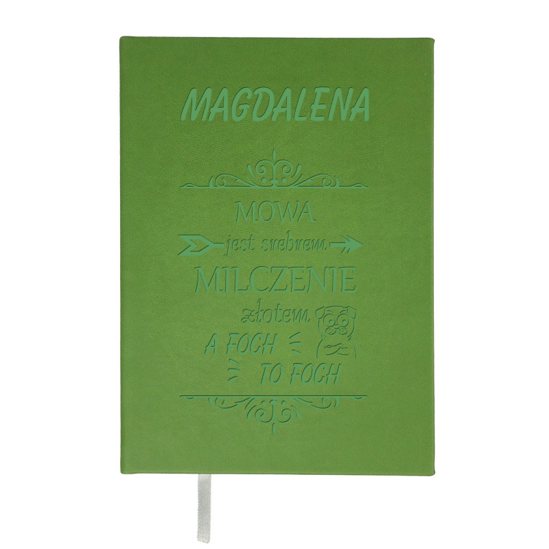 Notes (przepiśnik) dla niej ze śmiesznym tekstem - Mowa jest srebrem, milczenie złotem, a foch to foch personalizacja imieniem.