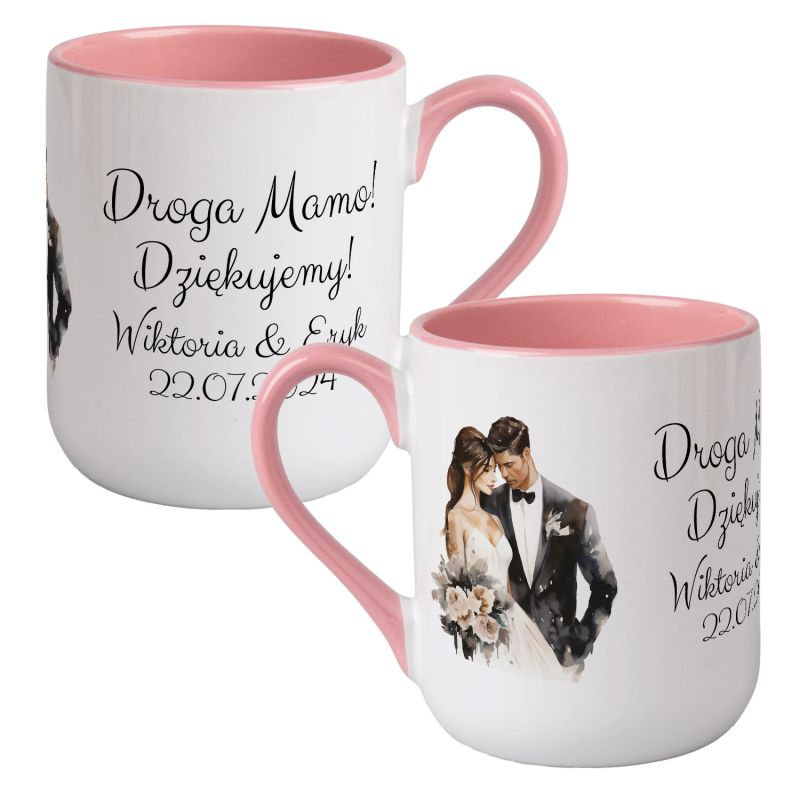 Kubek kawowy duży 330ml z kolorowym uszkiem i wnętrzem- Droga Mamo, dziękujemy!