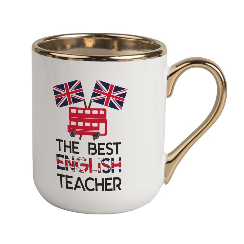 Kubek kawowy duży 330ml ze złotym uszkiem- The best English Teacher- Autobus.