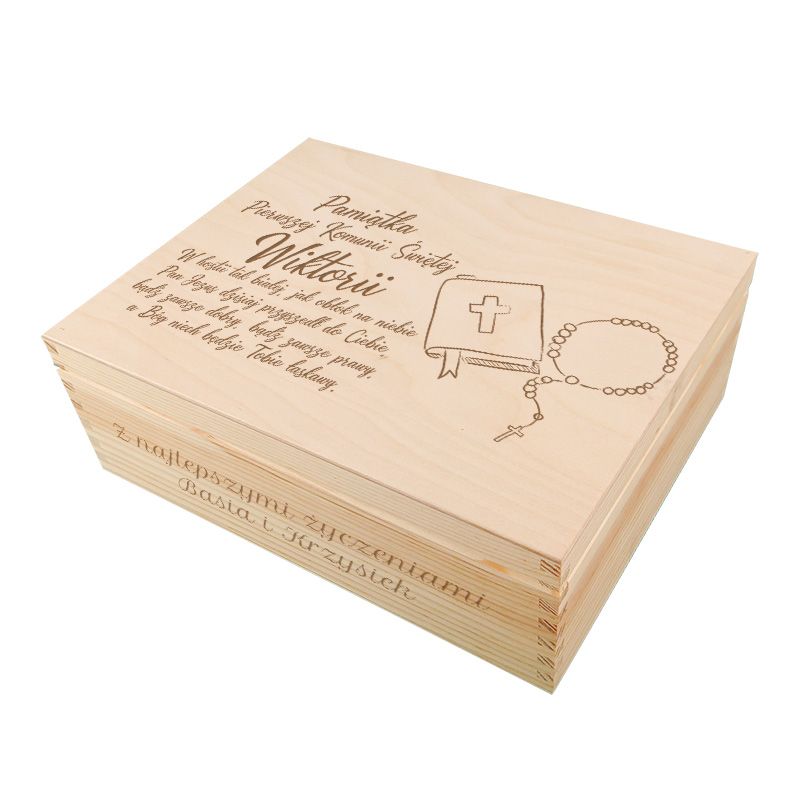 Co proponujemy wsadzić do środka? Różaniec, pieniądze, dodatki do stroju komunijnego, kolczyki, bądź zegarek, medalik lub bransoletkę, coś słodkiego itp.