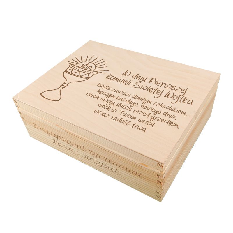 Co proponujemy wsadzić do środka? Różaniec, pieniądze, dodatki do stroju komunijnego, kolczyki, bądź zegarek, medalik lub bransoletkę, coś słodkiego itp.
