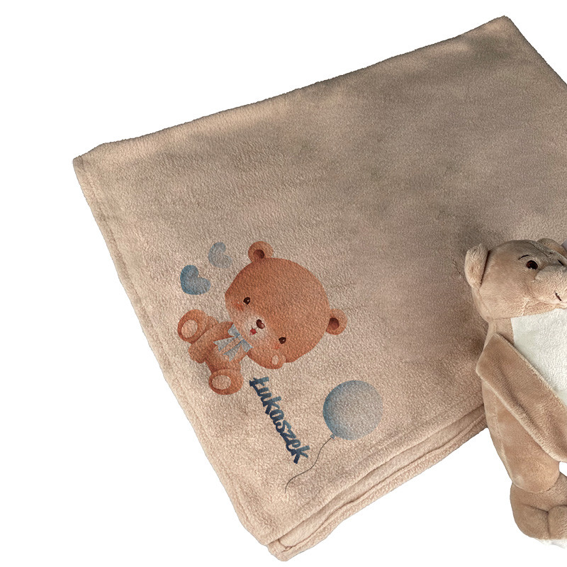 Miś trzymający koc między łapkami z imieniem...