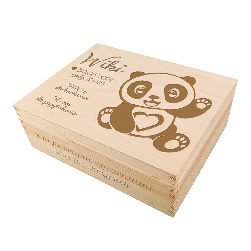 Świetna szkatułka z okazji narodzin dziecka. To prezent nie tylko dla Rodziców, ale i dla dziecka, ponieważ pamiątki, które zostaną tam schowane będą wszystkim przez lata przypominać pierwsze dni i lata maleństwa na świecie. Wewnątrz przegródki do umieszczenia przedmiotów związanych z narodzinami malucha- możesz kupić śmieszne gadżety sam, a też możesz pozwolić wypełnić je świeżo upieczonym rodzicom. Pudełko wyścielone jest wiórkami drzewnymi. Do pudełka pakujesz drobne gadżety i prezent z okazji narodzin, a zarazem pamiątka na całe życie gotowy.