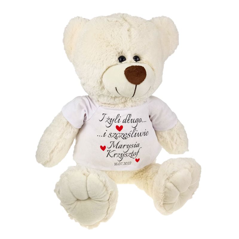 Maskotka miś duży "I żyli długo i szczęśliwie" z imionami oraz datą ślubu - ok. 55-60cm.