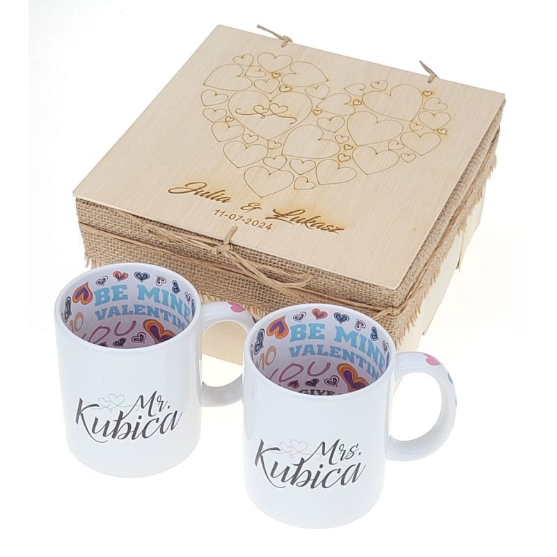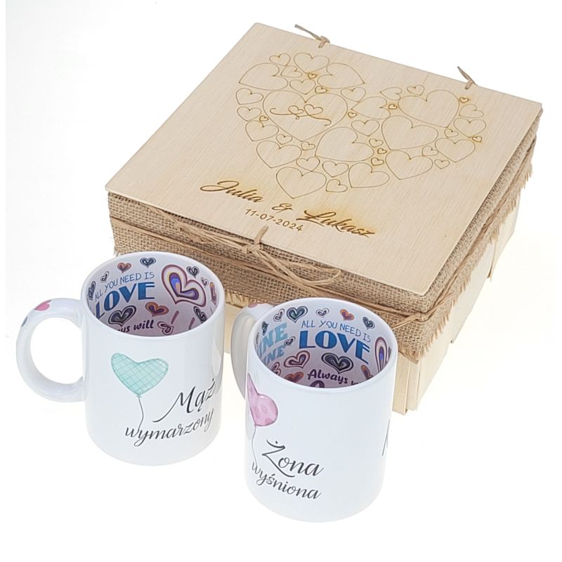 Zestaw Kubków z nadrukiem (sublimacja). Idealny na prezent ślubny, bądź nagrodę w zabawach oczepinowych.