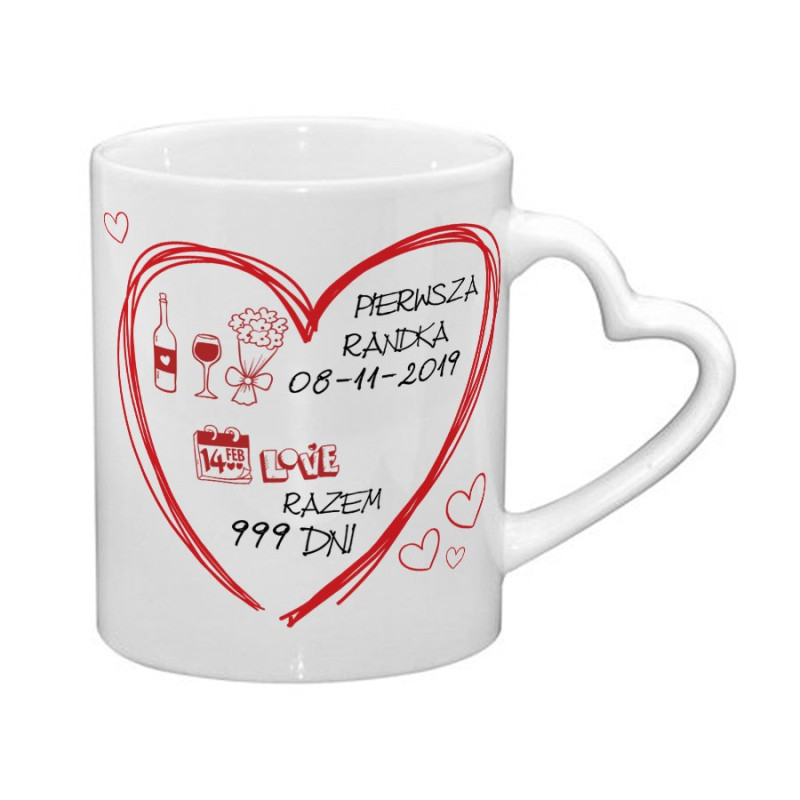 Kubek specjalnie dla babci z napisem i grafiką "Babcia gotuje wspaniale" - uchwyt serce.