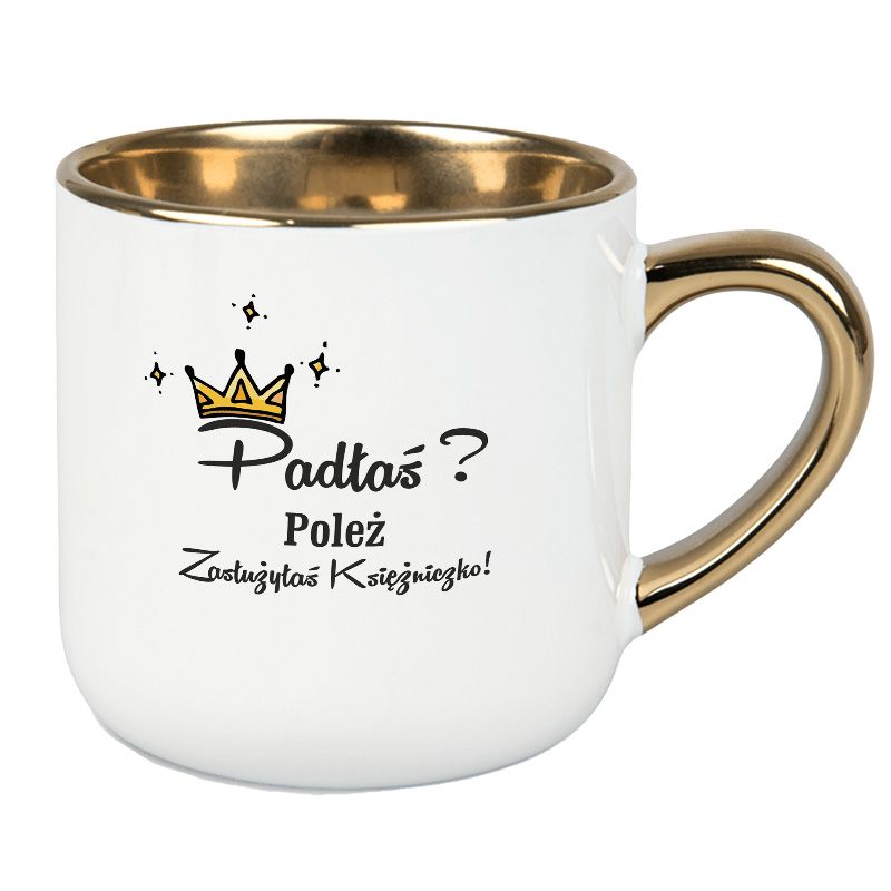 Kubek 400 ml „Padłaś? Poleż. Zasłużyłaś Księżniczko!” – idealny prezent dla kobiety z humorem