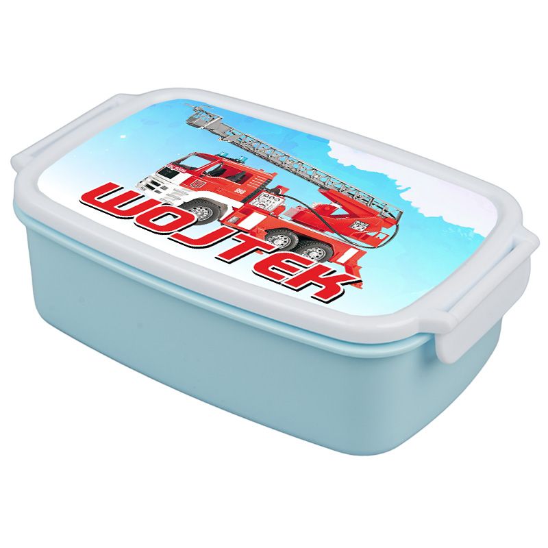 Pudełko na kanapki - śniadaniówka "Straż Pożarna"- wybierz swój wzór- pudrowa niebieska z zapięciami oraz przegródką.