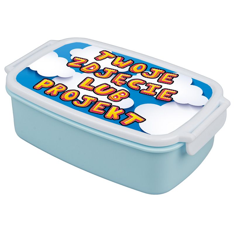 Pudełko na kanapki - śniadaniówka z Twoim zdjęciem, projektem- pudrowa niebieska z zapięciami oraz przegródką.