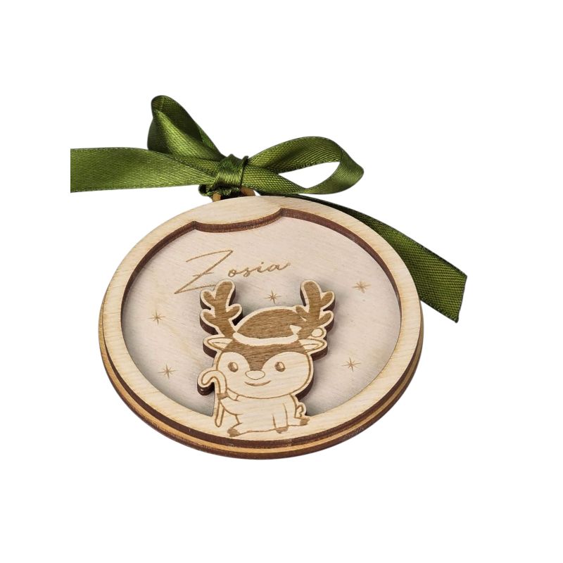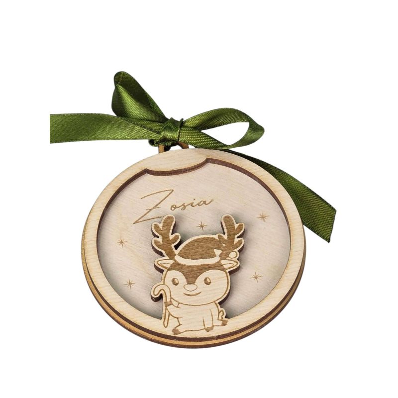 Wprowadź magię świąt do swojego domu dzięki tej uroczej bombce z drewnianym reniferkiem i imieniem! ✨🎁 To doskonały sposób, aby dodać wyjątkowości Twojej choince lub sprawić komuś cudowny prezent 🎅