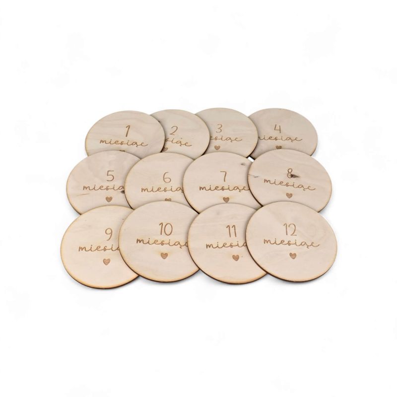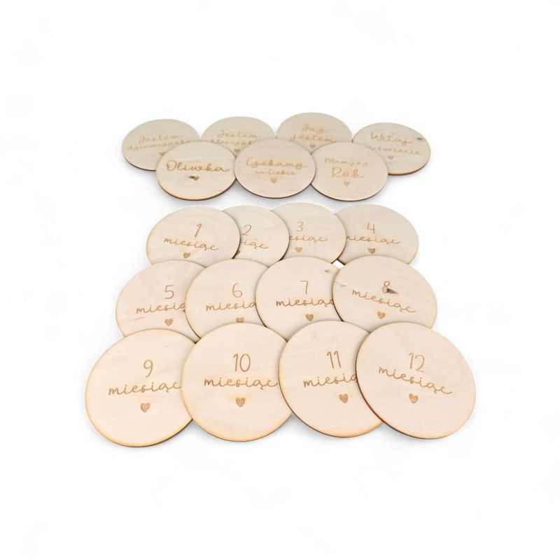 Drewniane tabliczki miesiące dziecka 📸 personalizowane krążki 1–12 miesięcy + imię 🧸 zestaw do zdjęć niemowlaka