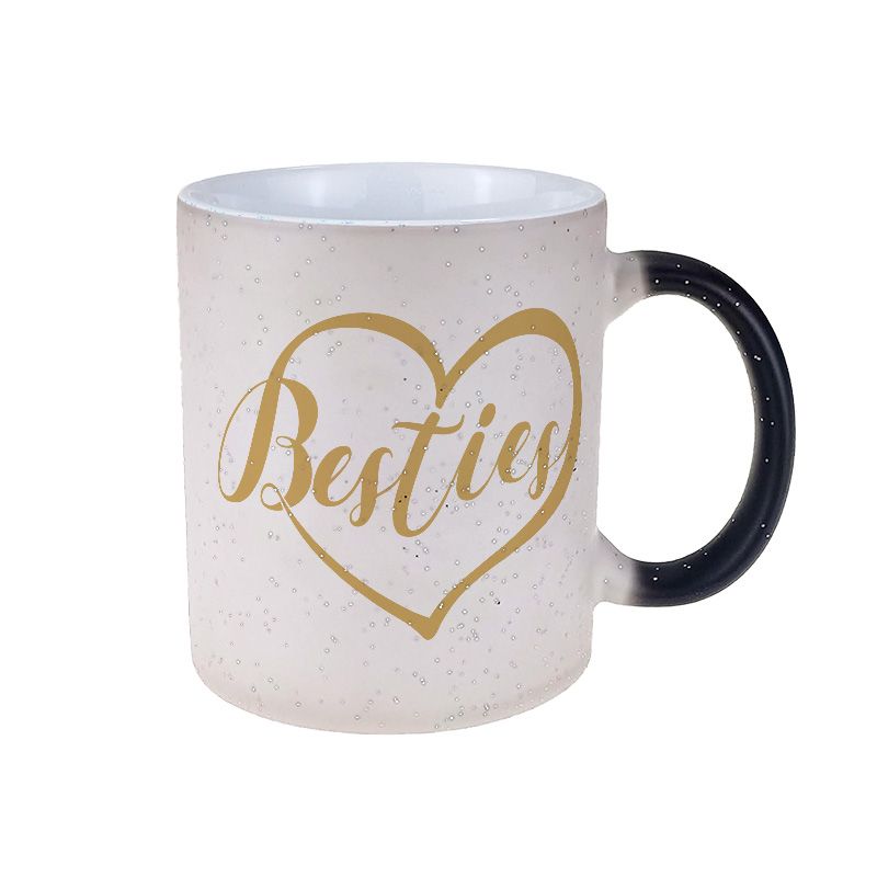 Kubek magiczny ze zdjęciem oraz imionami Przyjaciółek - czarny z brokatem.