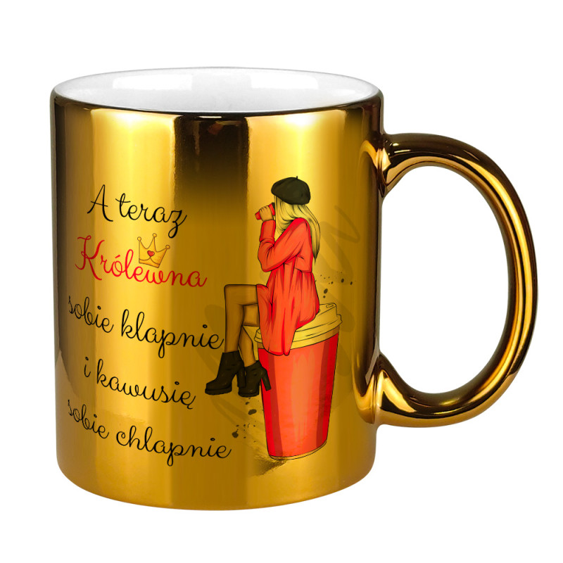 Kubek złoty błyszczący lub brokatowy z uroczym tekstem specjalnie dla ukochanej dziewczyny w stylu glamour. Idealny nowoczesny design. Totalna nowość. Kubek to oryginalny niepowtarzalny prezent. To świetna pamiątka i fajny upominek, który na pewno przez długi czas będzie używany przez obdarowaną nim osobę. Jeśli chcesz mieć niepowtarzalne kubki, to ten pomysł jest właśnie dla Ciebie.