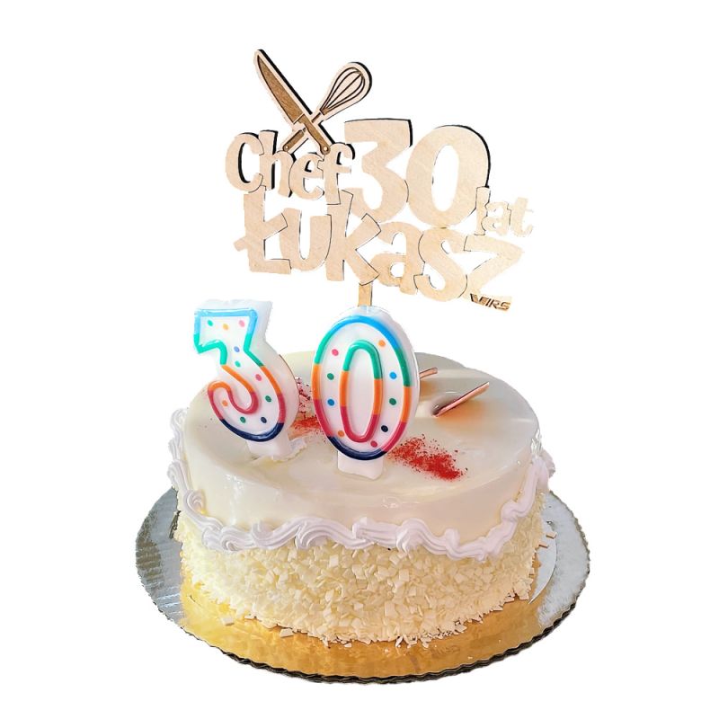Topper ze sklejki na tort urodzinowy. Urodziny to wyjątkowy dzień dla każdego z nas. Spraw, aby ten był wyjątkowy i na długo zapamiętany przez całą rodzinę i wszystkich gości. My Wam w tym pomożemy, oferując piękne zaproszenia, podziękowania - prezenty dla gości oraz indywidualne toppery na tort.