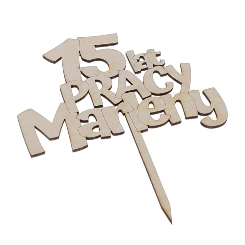 Topper ze sklejki na tort rocznicowy w pracy. Okrągły staż w pracy to wyjątkowy dzień dla każdego z nas. Spraw, aby ten był wyjątkowy i na długo zapamiętany przez wszystkich gości. My Wam w tym pomożemy, oferując piękne zaproszenia, podziękowania - prezenty dla gości oraz indywidualne toppery na tort.