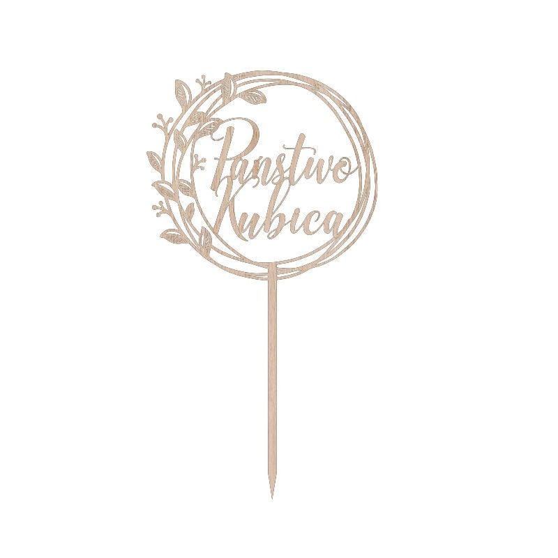 Topper na tort ślubny z nazwiskiem Młodej Pary- wianek boho.